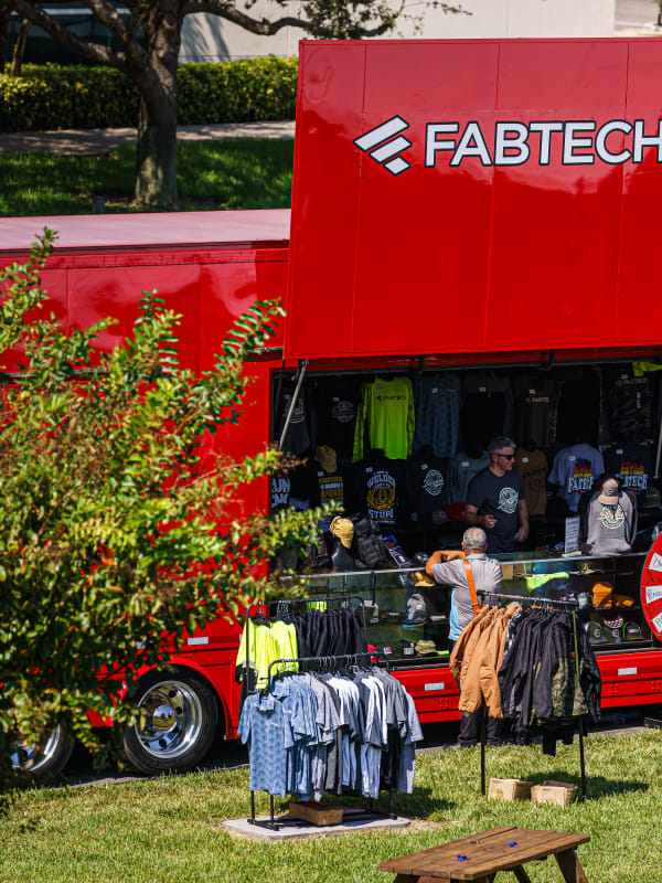 Stop by the FABTECH merch truck located in the outside area near the Lakeside Bridge and the Grand Concourse kiosk on Level 2.5 to shop during show hours.